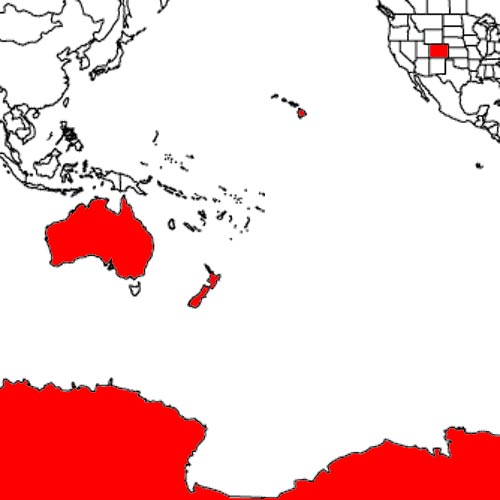 For three of the last four five, during during the months of October through February, Roxie has worked at McMurdo in Antartica. On her way to and from Antarctica she has stopped in Colorado, New Zealand, Australia and Hawaii. For some pictures of an area click on a link or click the location on the map.